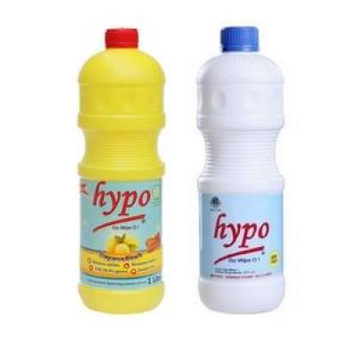 Hypo Super Bleach. Bleach is also perfect for bring your clothes back to life by restoring their whiteness. When your white shirts fade, there's only one answer to restore them - a good bottle of bleach. Hypo is a potent stain remover that comes in affordable volumes. It doesn't just remove stains, it also gets rid of bacteria, fungi and other microbes that could have been breeding on the stained surface or spot. Not just does it remove stains and germs, it also breaks down organic and inorganic odoriferous compounds to leave the spot or surface smelling fresh and new. Hypo bleach is also effective in the laundry of white shirts, socks, singlets and fabric as a whole. The active ingredient is sodium hypochlorite, an inorganic salt containing sodium, oxygen and chlorine. In water, it dissolves to form free chlorine radicals which help to attack stubborn stains in the armpits and neck area of white fabrics. These chlorine radicals also make hypo very suitable in the treatment and disinfection of water. Hypo is more than just a bleach, it is an extra hand for every day chores. You can make your life easier and stress free by choosing hypo today. Liquid bleach or household bleach is one product that has so many uses. It is used to sanitize toilet bowls, bathrooms, floors, whiten clothes and remove stains on all kinds of surfaces. The active ingredient in bleach is sodium hypochlorite which makes it a powerful disinfectant for your home and office. Before using any chemical bleach, you should read the instructions and directions for use in order to avoid any damage to your surfaces or even your skin. It is advised you wear protective gear like gloves and even cover your mouth and nose to avoid direct contact with your skin. Household bleach can also be used to remove mold and mildew as well as to disinfect surfaces annd utensils in the kitchen. It's not enough to clean your bathroom and toilet; you need to apply bleach to get rid of all the dirt and tough stains and to remove any harmful germs, viruses, fungus and bacteria. Bleach is also perfect for bringing your laundry and clothes back to life by restoring their whiteness. Liquid bleach for clothes are good to use when your white shirts fade as it helps restore them to their former glory.