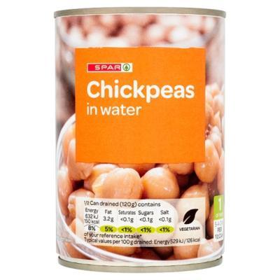 Spar Chick Peas In Water. Beans can be cooked in a variety of ways depending on your diet and taste. Spar chick peas in water are canned chickpeas that are precooked in water. You can eat canned chickpeas straight out of the can! Just be sure to rinse them off before chowing down. It saves time and its easy to use. Chickpeas contain both starches and proteins. But while they may be a starch, they are a great source of fiber and have a lower glycemic index than its other starchy veggie counterparts (like potatoes). Spar one chick peas are well canned in a quality 400g tinDirections for use: Cooking Instructions: To Serve Hot: Empty contents into a saucepan and heat gently until thoroughly hot. Stir at intervals but do not allow to boil as this will impair the flavor. Drain and serve. To Serve Cold: Empty contents of the can into a sieve. Rinse beans under running water, drain and serve. Buy Spar Chick Peas In Water 400 g on Ovulent Chick peas are very nutritious and allow you add variety to your diet. Chick peas are an excellent source of protein and other nutrients. Beans can be cooked in a variety of ways depending on your diet and taste.
